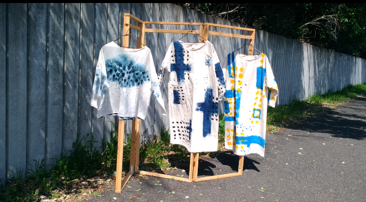 裁断した布地に直筆で模様や絵を描き入れてから仕立てる「手描き模様の服」、ちょっと変わった柄使いの服、帽子やバッグなど、カラフルな配色のデザインニット、Tシャツなど、直筆イラストグッズなど、多岐に渡るものづくりをしています。
