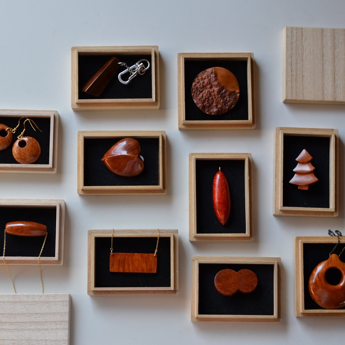 ハンドメイドパイプなどに用いる銘木で、装身具を制作しています。