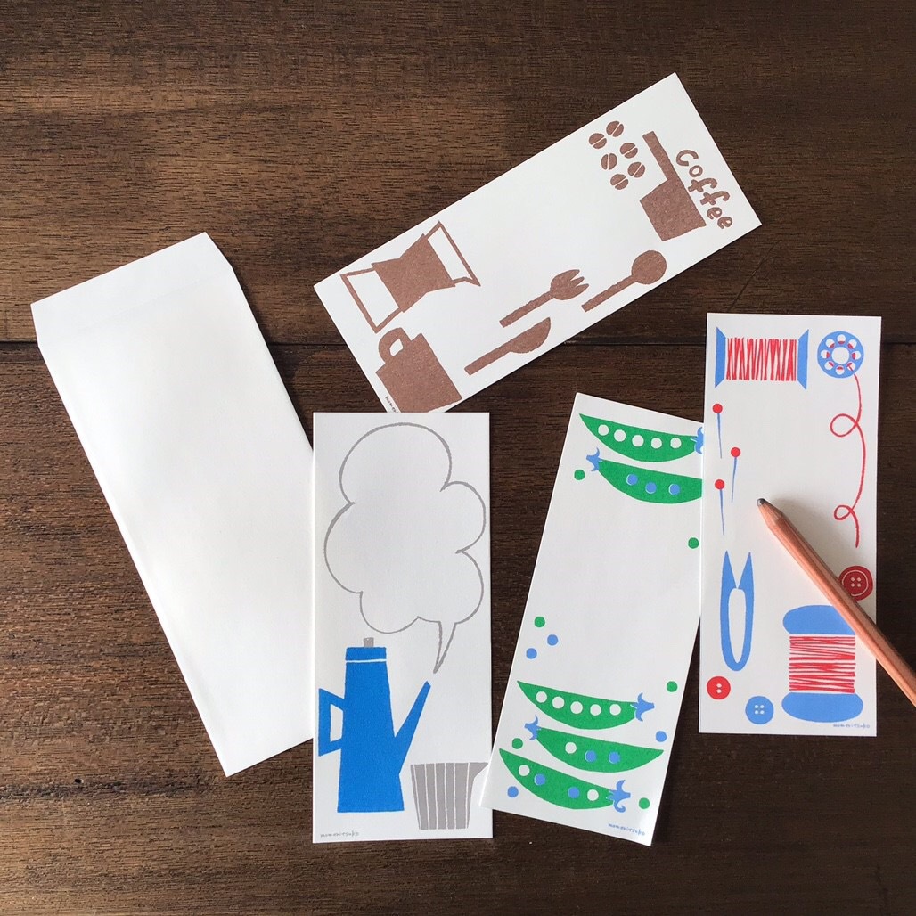 身近な人にちょっとした心づかいを伝えるをテーマにオリジナルのペーパーアイテムをデザイン制作しています。孔版印刷ならではの厳選された色数と色づかい。どこか懐かしさの中にも新しさを感じられるようなデザインを心がけています。