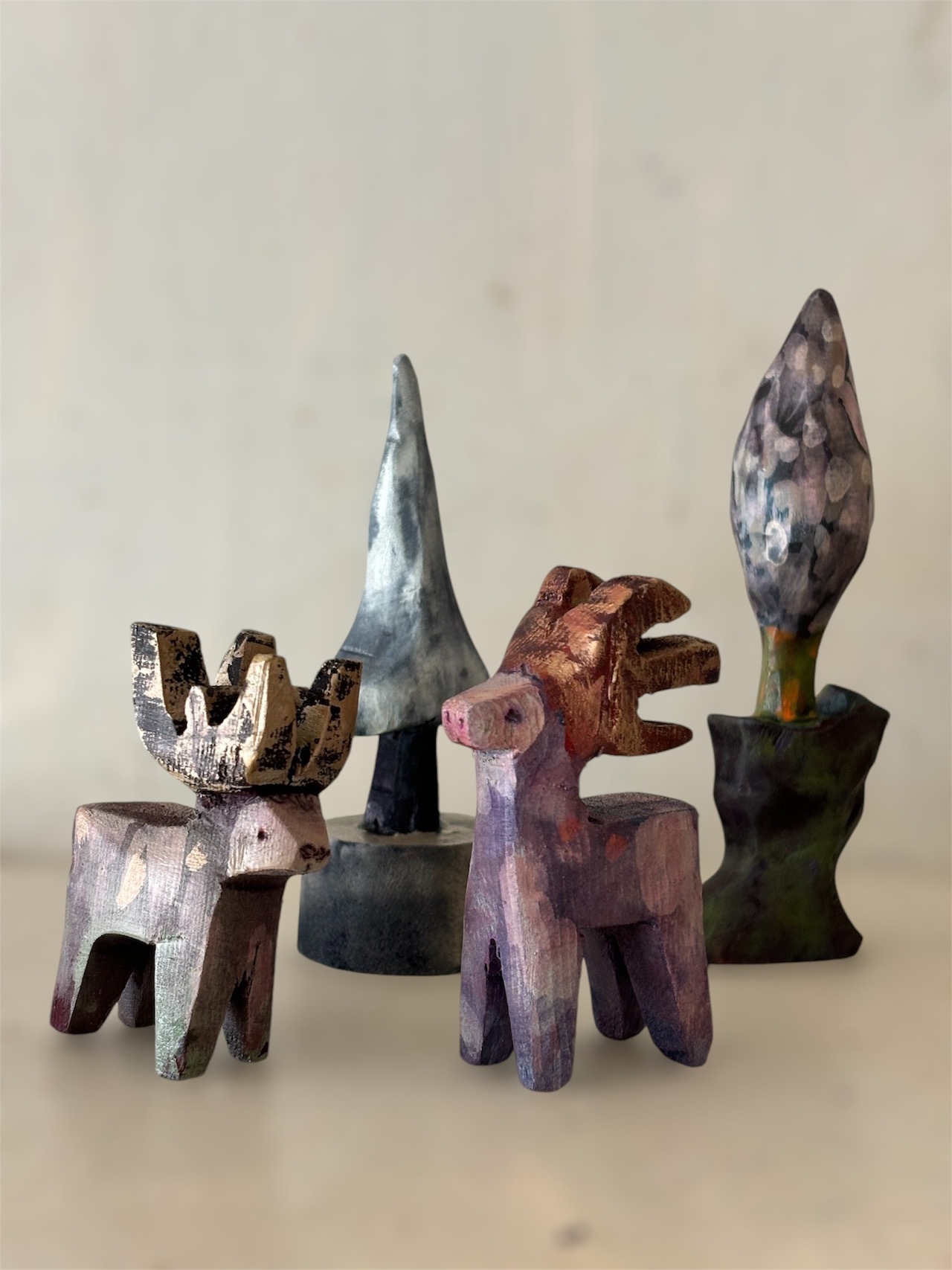 奇妙で不思議な雰囲気のオブジェやブローチは、全てオリジナルの一点モノの木工アートです。